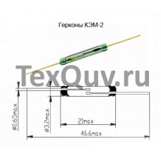 Герконы КЭМ – герметизированные магнитоуправляемые контакты. Герконы серий КЭМ-1, КЭМ-2 и КЭМ-6 – замыкающие; серии КЭМ-3 – переключающие. Предназначены для коммутации электрических цепей постоянного и переменного тока частотой до 10 кГц с активной и индуктивной нагрузкой напряжением до 300 В, силой тока до 4 А и коммутируемой мощностью до 30 Вт (ВА). В зависимости от значения магнитодвижущей силы срабатывания (МДС) герконы КЭМ делятся на четыре группы чувствительности – 0, А, Б и В. Вид монтажа – в отверстия, под пайку.