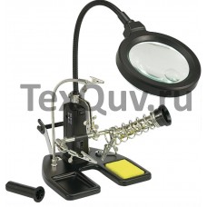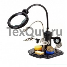 Держатель «третья рука» с лупой х3, подставка под паяльник, LED подсветка, стенд для припоя служит главным образом при проведении паяльно-сборочных работ в электронике, ювелирном деле, сборке и ремонте для зажима мелких деталей в любом нужном положении, когда не хватает двух рук.