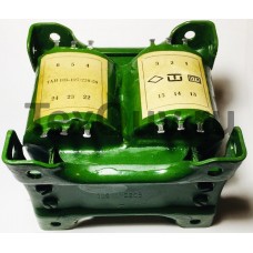 Трансформаторы ТAН105 на 220 В выпускаются начиная с 1979 г., они имеют одну первичную обмотку и такую же нумерацию выводов, как у трансформаторов на 127/220 В. Электрические параметры, габаритные и установочные размеры, а также масса трансформаторов ТAН105 на 220 В такие же, как у соответствующих трансформаторов ТAН105 на 127/220 В. Напряжение на отводах первичных обмоток трансформаторов ТAН105 на 127/220 В: между выводами 1 и 2, 4 и 5 - 110 В; между выводами 2 и 3, 5 и 6 - 7 В. При использовании трансформаторов ТAН105-127/220 на 127 В необходимо: соединить выводы 1 и 6, 3 и 4, при этом магнитные потоки первичных обмоток обоих стержней суммируются; подать напряжение 127 В на выводы 1 и 3 или 4 и 6. При использовании трансформаторов ТAН105-127/220 на 220 В необходимо: соединить выводы 2 и 5; подать напряжение 220 В на выводы 1 и 4.